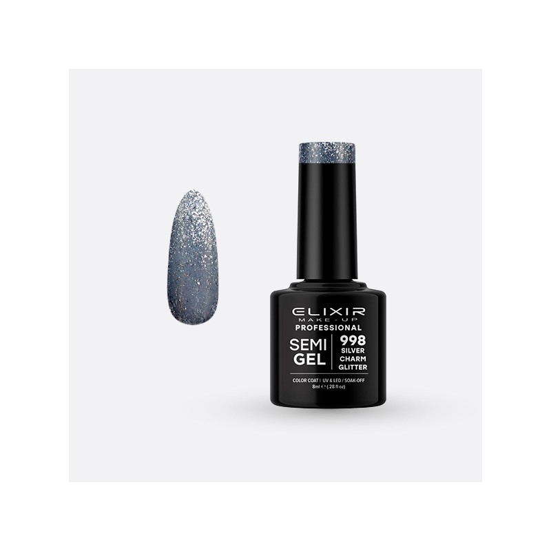 Ημιμόνιμο βερνίκι 8ml – #998 (Silver Charm Glitter)